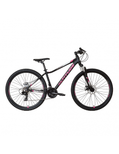 Cuenta con 16 velocidades para disfrutar del desarrollo adecuado en función del terreno, y frenos de disco que ofrecen una mayor potencia de frenada.